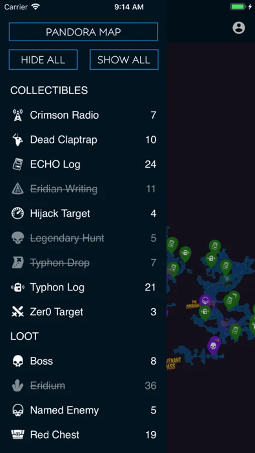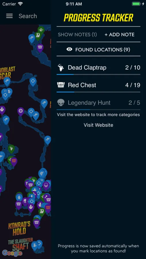 • Progress Tracker - mark locations as found and track the progress of your collectables.