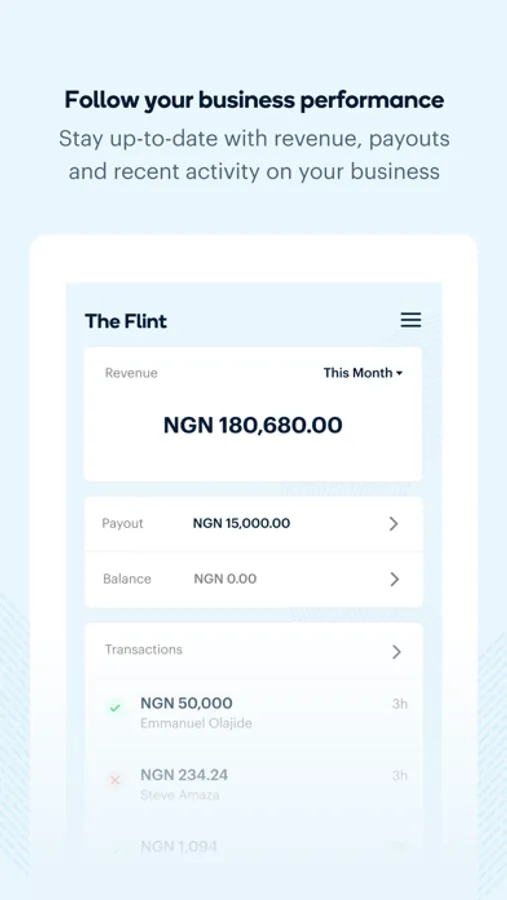Paystack helps businesses in Africa get paid by anyone, anywhere in the world. With the Paystack Merchant App, you can: