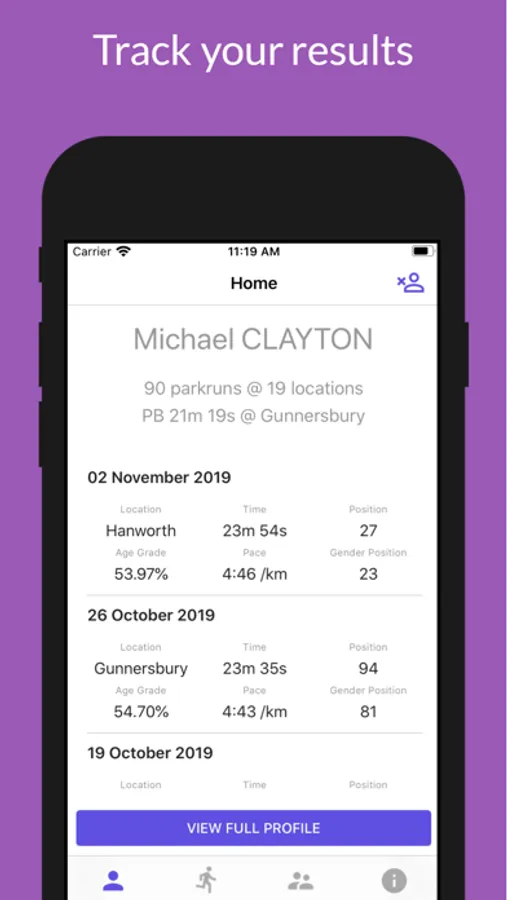 Check out yours and family / friends run & volunteer history. Keep track of PB's, events you've attended, volunteer roles you've fulfilled and positions you've finished in