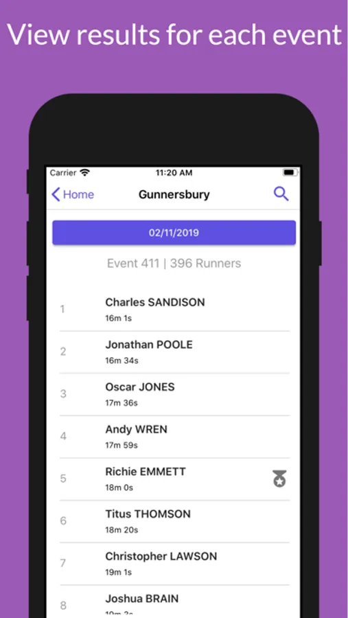 Access your 5k and junior results history, the latest results for each event world wide and a digital copy of your barcode. Simply enter your barcode number and all your results are at your fingertips