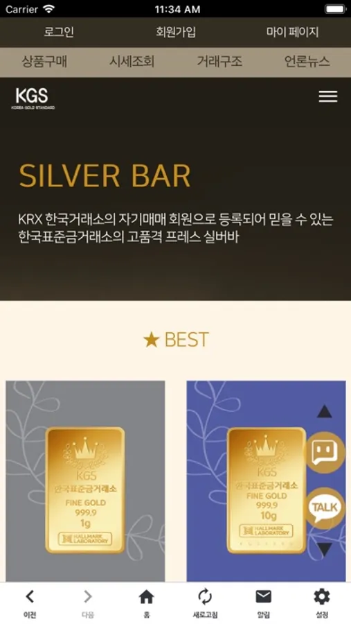 KGS안전자산 한국표준금거래소 정확한 국제 금시세 및 은시세 제공