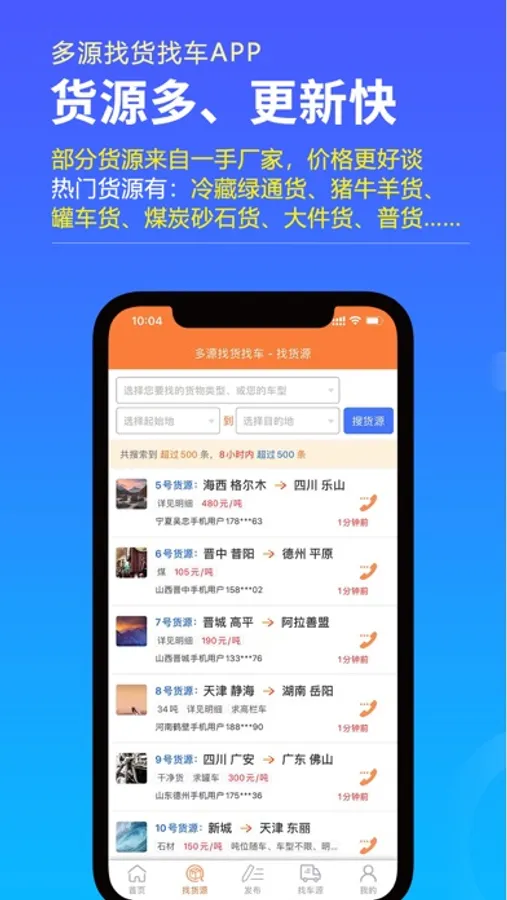 5、热门货源有:冷藏绿通货、猪牛羊货、罐车货、煤炭砂石货、大件货、普货……