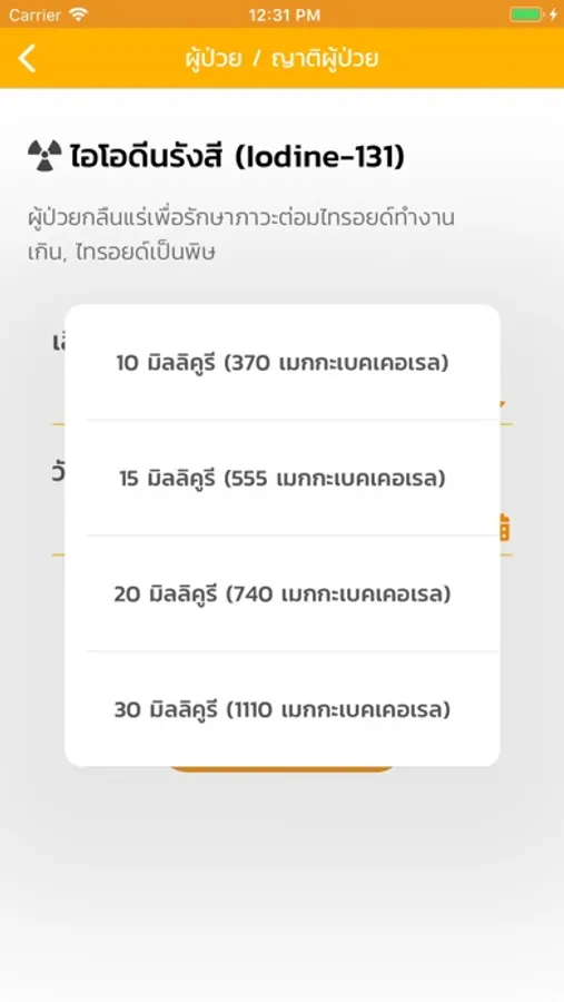 แอพพลิเคชั่นมือถือสำหรับประเมินความเสี่ยงรังสีต่อคนในครอบครัวและประชากรทั่วไปที่ทำการรักษาด้วยไอโอดีนรังสี (ไอโอดีน-31)