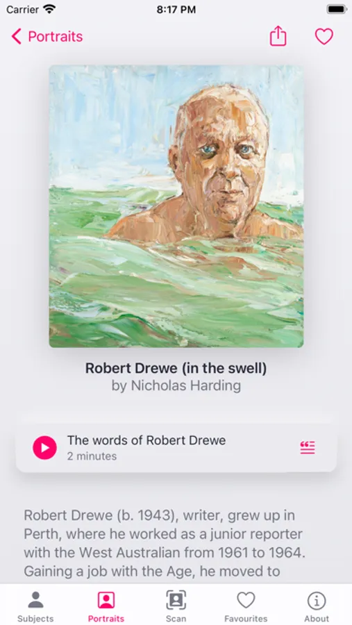 In their own words is an audio-guide with a difference, where portraits of these remarkable Australians speak for themselves. Be intrigued and inspired by two-minute personal stories told by the subjects and the artists as you encounter them.