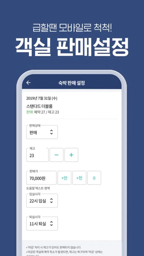 2. 판매 관리 : 객실가격/재고를 변경할 수 있습니다.