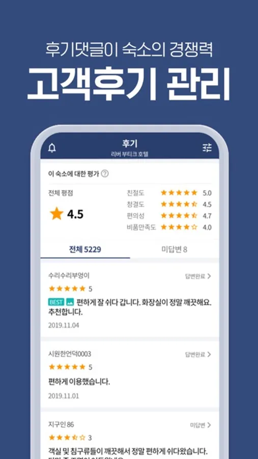 3. 후기 관리 : 후기를 확인하고, 댓글을 달 수 있습니다.