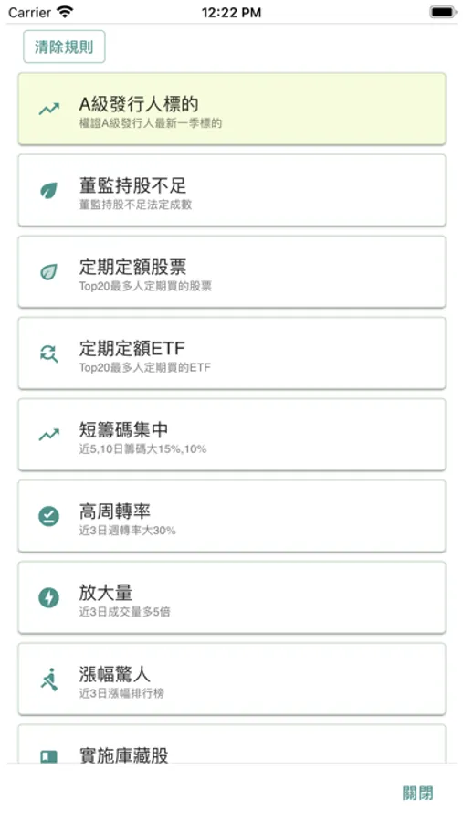 別再為了設定規則跟搜尋不到股票而煩惱,直接勾選您在意的項目,系統會自動找出最貼近您想法的股票。