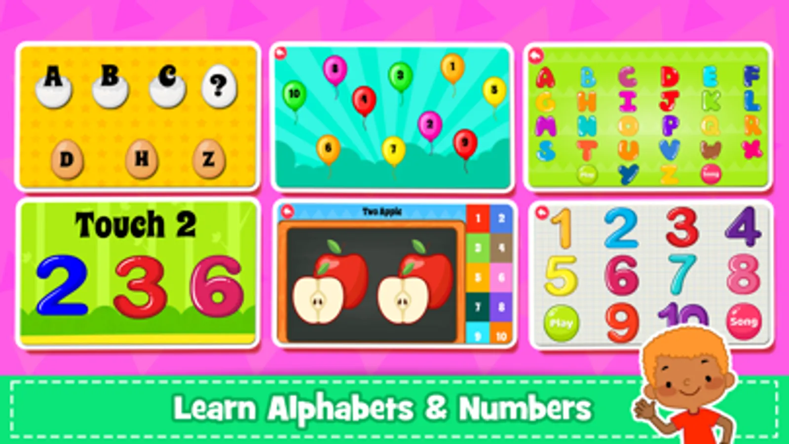 * Toddlers can practice the basics of ABCs (letters) and Numbers (1-10) using this app (games). Educational games increase child skills & interest in learning new things using the phone or tablet in a fun way