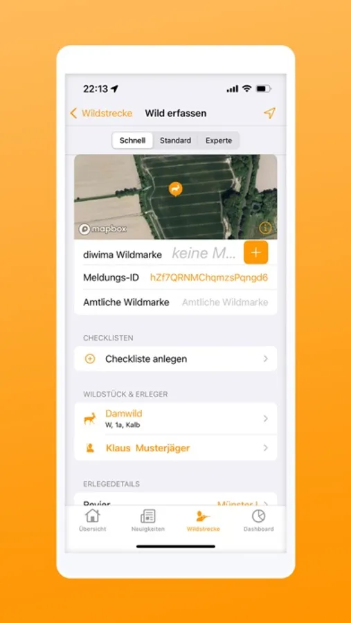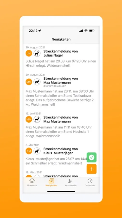 Game Tag app. Reporting all mandatory hunting bag data after a successful hunt by paper and pen not only is tortuous but time-consuming. The diwimaⓇ Game Tag app finds a remedy by offering to collect this bag data of game records digitally and in no time right at the hunting location. You don’t even need to be online as the app will automatically upload and save the report to the diwimaⓇ Cloud as soon as your phone reconnects to the internet. With diwimaⓇ Analytics you are always up-to-date when it comes to the current hunting ground game bag status. With the in-app news feed you will never miss any hunting event in your district. This, in turn, helps you optimize your upcoming hunting plans.