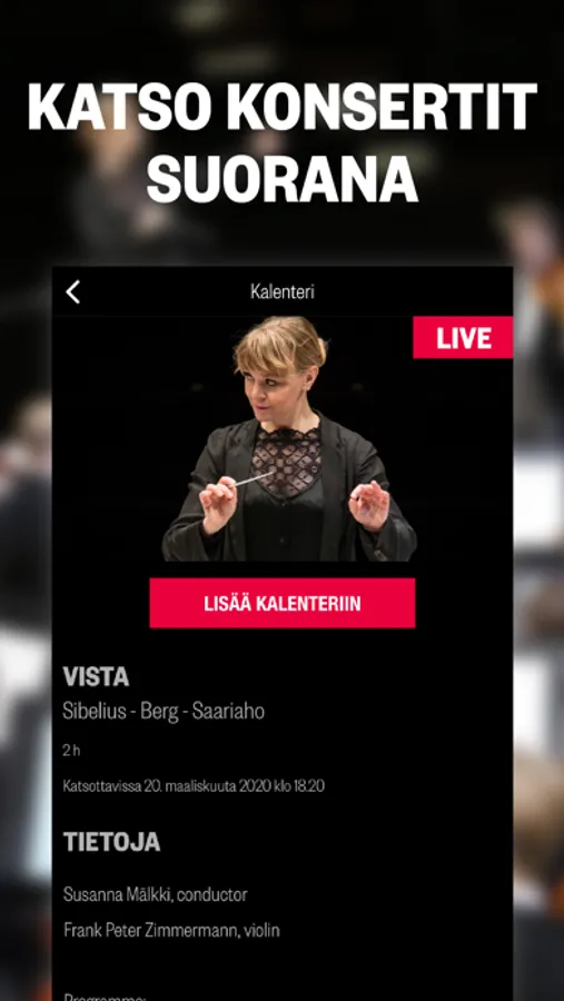 HKO Screen -sovelluksen lataaminen, konserttien seuraaminen suorana ja tallenteiden striimaaminen on ilmaista.