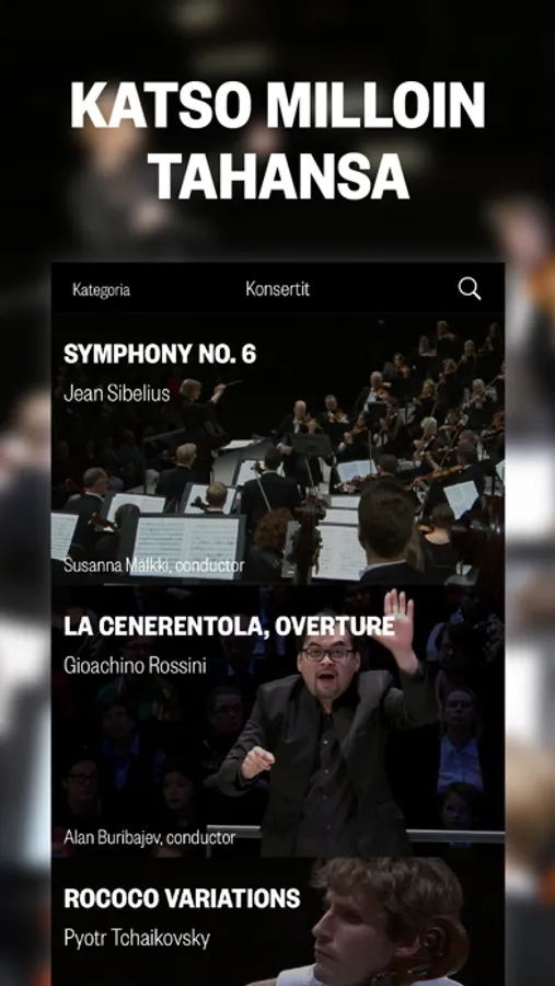 HKO Screen -sovellus tuo Helsingin kaupunginorkesterin konsertit kotisohvalle tai mukaasi sinne minne menetkin. Vaikka et pääsisi paikalle Musiikkitaloon, voit katsella ja kuunnella konsertteja sovelluksessa - silloin kun sinulle sopii.