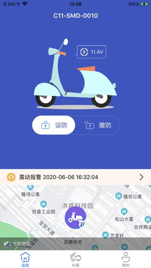 该app用于智能电动车出行,随时随地监控自己电动车的位置,以防丢失。