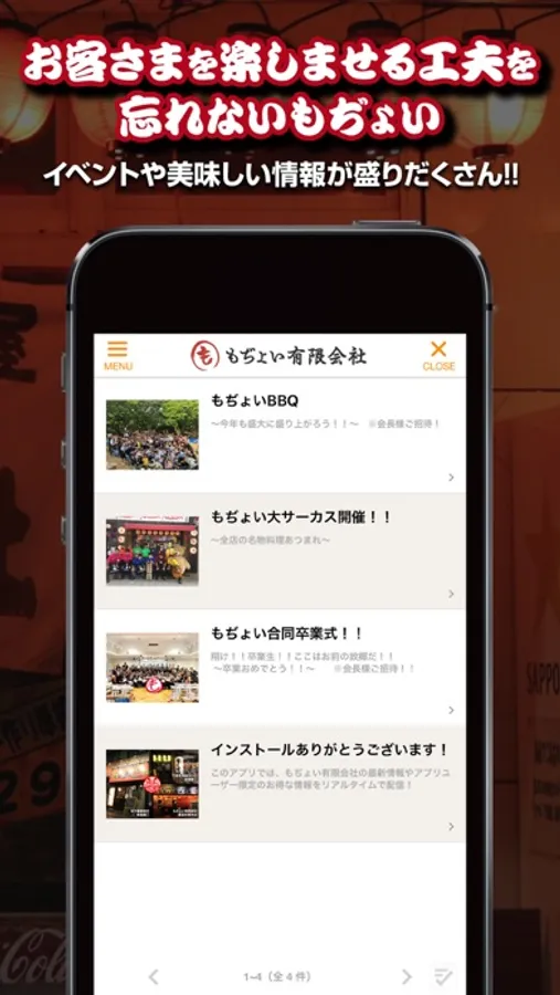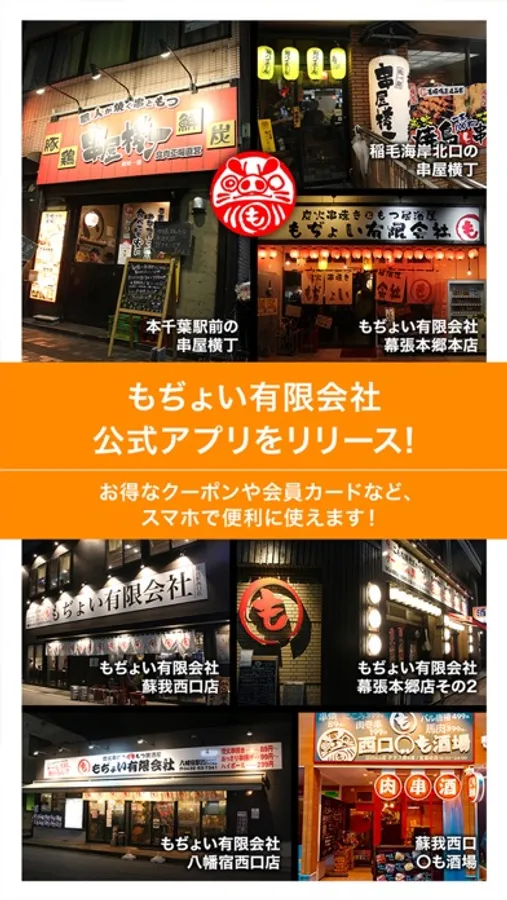自社ブランドの居酒屋「もぢょい有限会社」の公式アプリです!