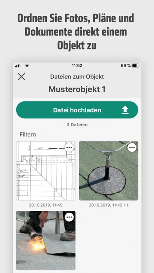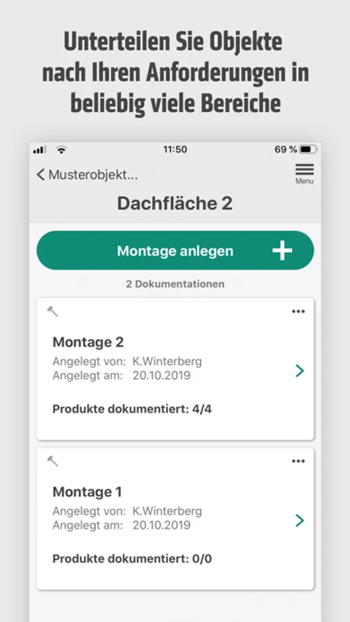 • individuelles Profil ohne Speicherlimit: Absturzsicherungen, Solaranlagen, Regenrinnenwartung – lege so viele Projekte an, wie Du willst.