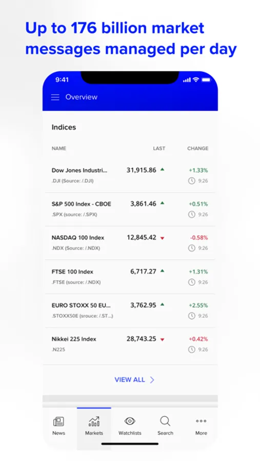 • Up-to-the-minute news across multiple markets with access to 10,500+ real-time newswires, global press, and web news sources