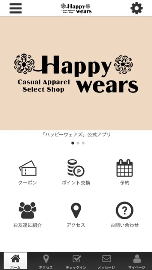 このアプリでは、Happywearsの最新情報の受け取りや便利な機能を使う事ができます。