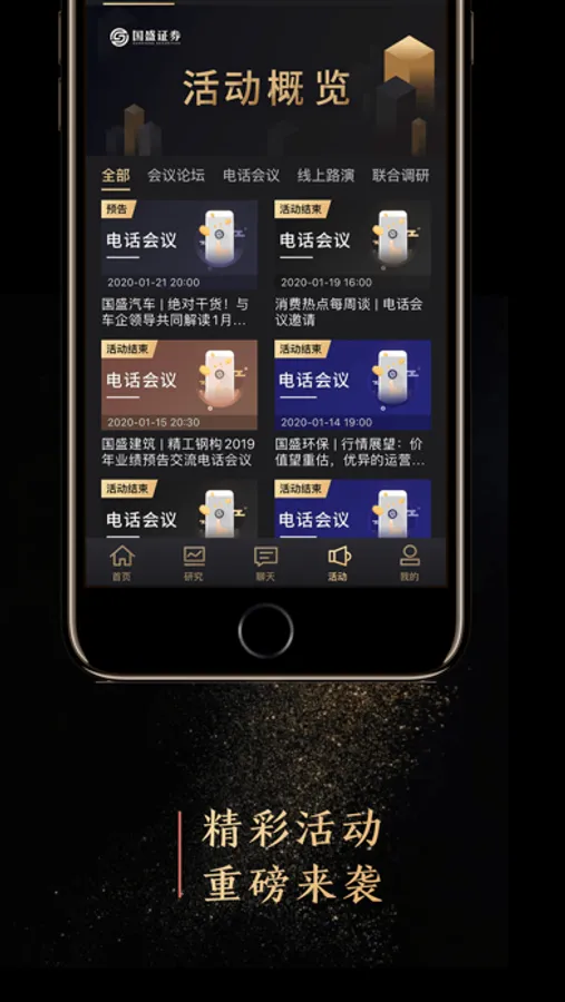 专业活动:包含会议论坛、电话会议、线上路演和联合调研,支持在线报名和路演回放。