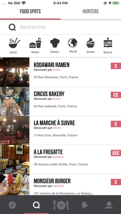 Food Hunter est une application de recherche de restaurants afin que tu puisses recommander tes meilleurs plans (street food, gastro food, asian food, …) et les partager avec tes followers :)