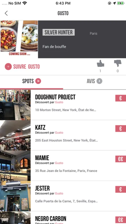 L’objectif de Food Hunter est de référencer les meilleurs spots alors si un restau à 5 avis négatifs d’un hunter de niveau au moins Silver, le restau est bani « You must choose but choose wisely …. »