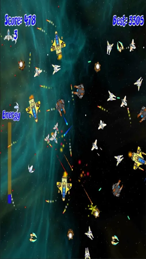 Retro, old school arcade classic. Fly your 3 hyper assault space destroyers through the countless galaxies and clean up the infamous space pirates.