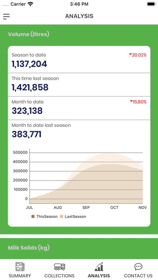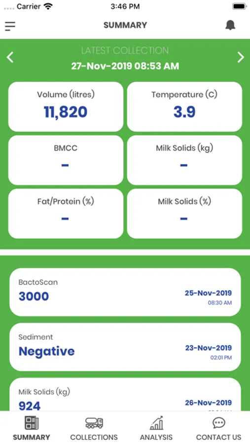 This app offers insights and analysis into milk collection results and allows Access of up-to-date milk production and milk quality data at any time. Analyse and drill deeper into each of the quality points with powerful full season to season comparison. Useful FAQ, contact, and alert notifications of new collection and result data.