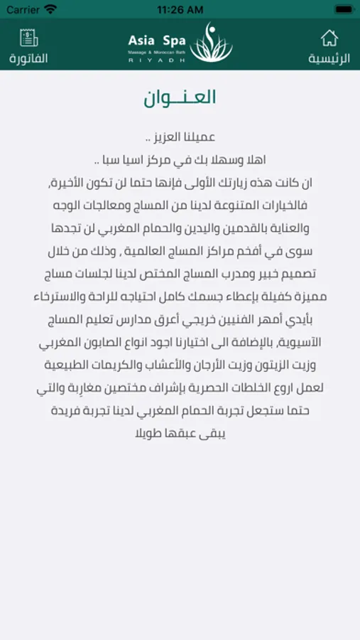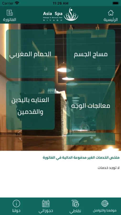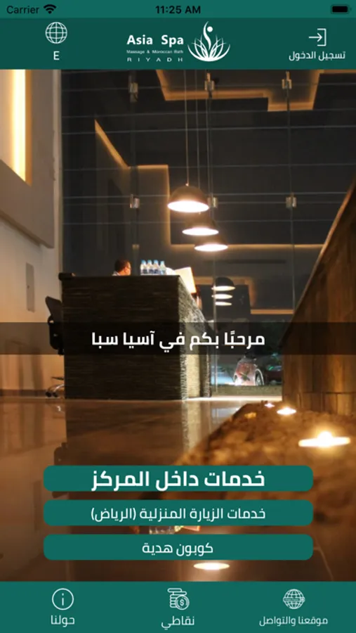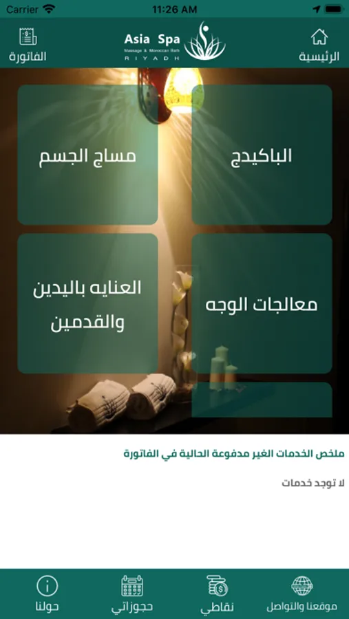 بمجرد دخولك على التطبيق واختيار تقنية Gps لتحديد مكانك واختيار خدمتك، يمكنك معرفة أسعار الخدمات، وإمكانية الحجز بدون مشاكل وفي الوقت المناسب لك وكذلك يسمح تطبيق اسيا سبا بالدفع النقدى او البطاقة الائتمانية، وتحفظ تفاصيل الخدمة لتسهيل عملية إعادة الخدمة لدى أرقي مركز سبا في المملكة العربية السعودية.
