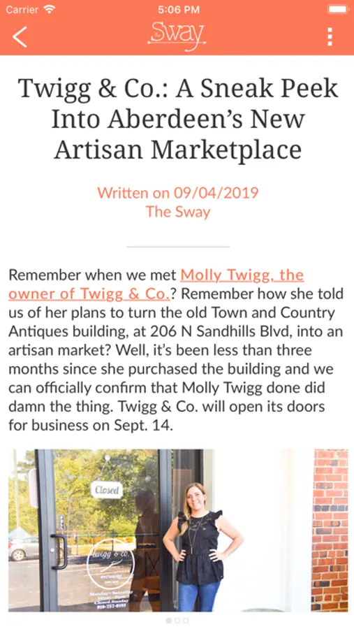 The Sway app connects you to the Moore County community with the news you care about, the businesses you need, giveaways you can actually win and events you’ll actually want to attend. The Sway is a community 15k strong that loves all things local, from bags to brews.