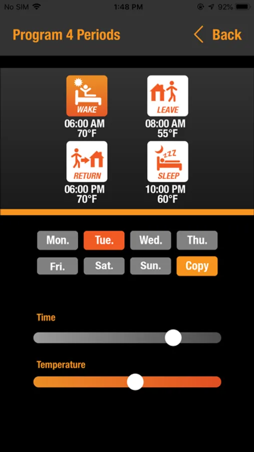 Offering simple thermostat programming and temperature control.
