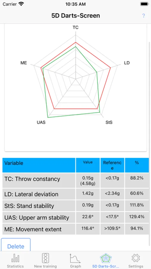 Visualize and improve the different parameters which are decisive for an optimal throw according to the 5D-Dartscreen: