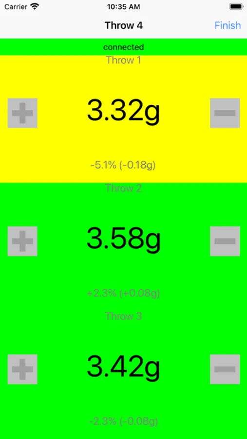 In the basic version, a maximum of 3 throws can be displayed simultaneously and overlapping. In the premium version, 10, 20 or all throws of a training can be displayed simultaneously.