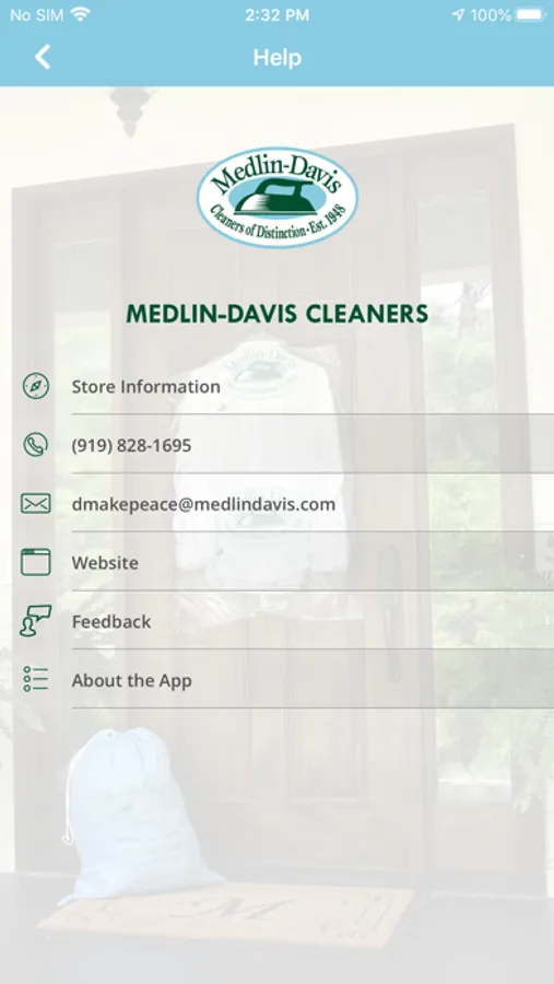 5) Quickly contact Medlin-Davis Cleaners by phone or email and access their website all directly from your device.