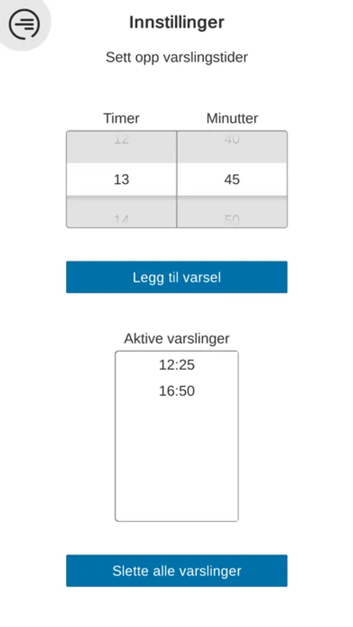 - Registreringsskjema for når og hvilke medikamenter du har brukt