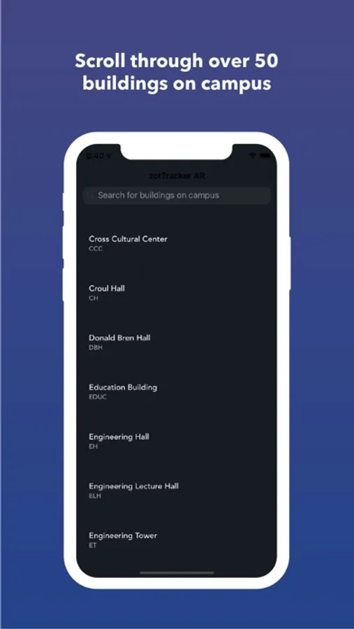 Use augmented reality (AR) to find your way around the University of California, Irvine campus. With over 60 different buildings mapped out, you'll be sure to find where you need to go!