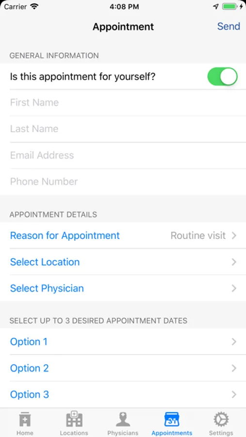 -Requesting appointments with the secure appointment request form;