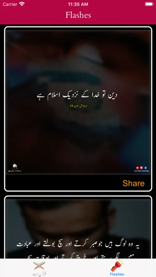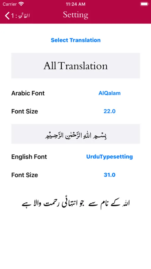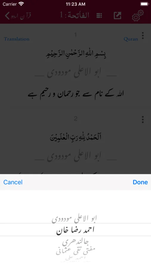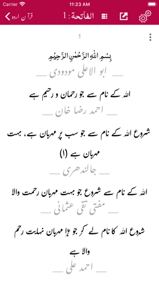 The app features eight (8) Urdu Translations of Quran written by following scholars