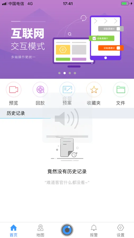 目前该软件主要支持实时预览(包括云台、对讲等)、录像回放、地图、收藏夹、本地管理等功能