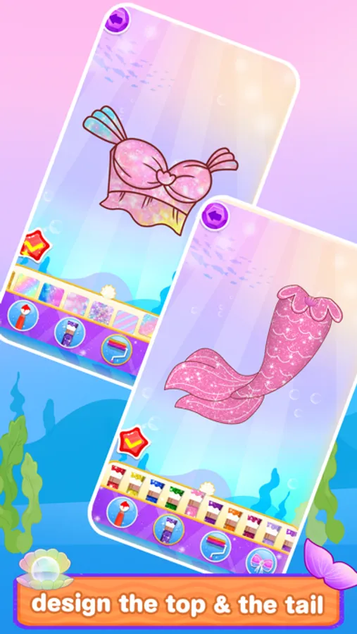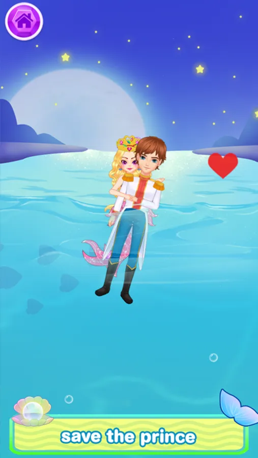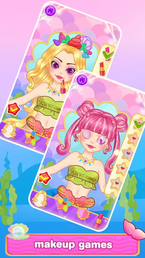 Play the makeup game to be the most beautiful mermaid princess. Dress up with self-designed top and tail. Be creative, use colors, glitters, patterns and beautiful decorations to design for the princess. Find the treasures beneath the ocrean. Avoid dangerous sea animals. Choose the best jewellery from the treasure shell. Choose gems for your sparking crown. Listen carefully! It looks like a drowning prince is asking for help. Can you successfully rescue the prince?