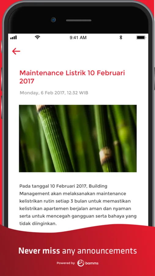 Introducing Prudential Tower by BAMMS, a mobile application that allows all tenants to receive information about their building and units, to report problems or incidents, to book facilities, to create and manage inquiries, and to request for any value added services provided by the building management.