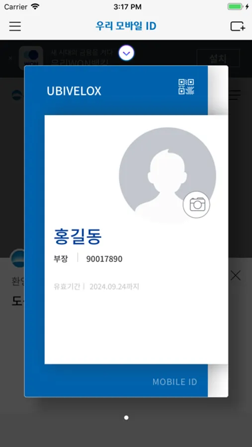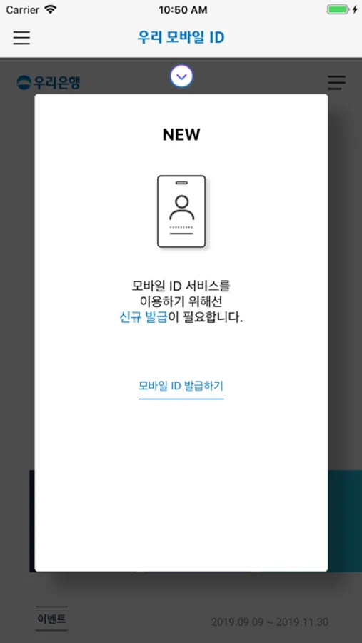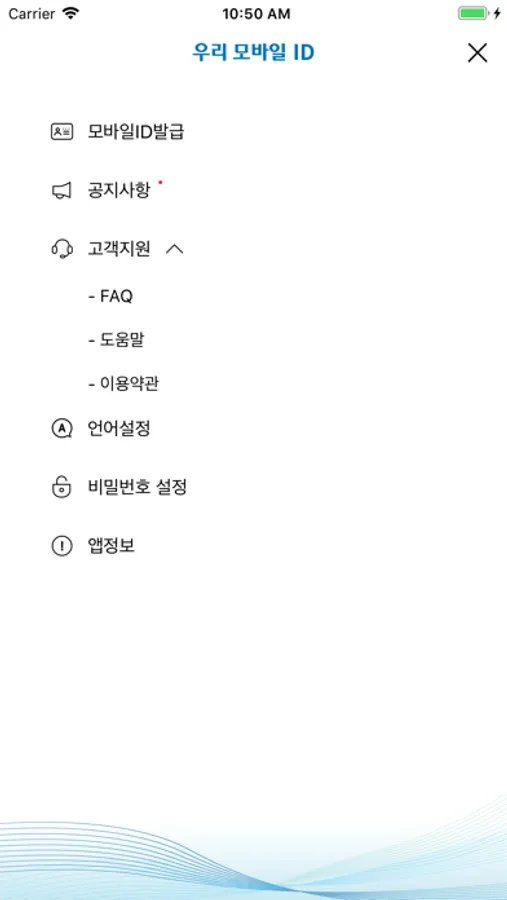 - 우리 모바일 ID 서비스는 iOS 10.0 이상서부터 지원됩니다.