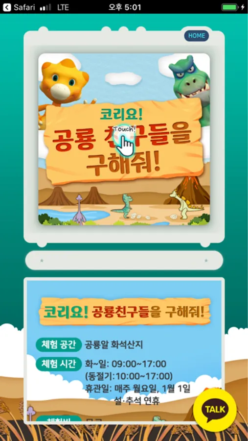 #코리요! 공룡친구들을 구해줘!#를 통해 코리요와 함께 스마트폰으로 증강현실(AR) 게임을 즐기고 공룡알화석지 속 숨겨진 이야기를 보고 느끼고 퀴즈로 풀어보며 코리요와 공룡알화석산지에 대해 체험해보세요