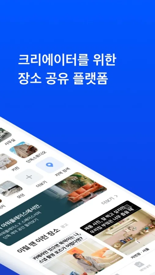 - 콘텐츠 제작을 위한 전국 모든 종류의 공간을 간편하게 예약해보세요.