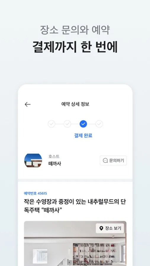 - '메시지' 기능으로 예약 전 꼼꼼한 사전 문의와 소통을 할 수 있습니다.