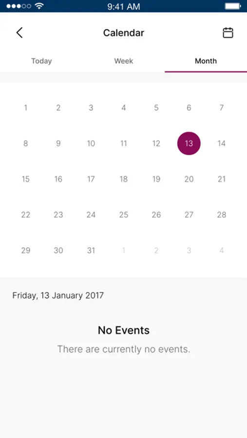 Calendar: The Calendar provides carers a personalised view of what's coming up for the day or in the future.