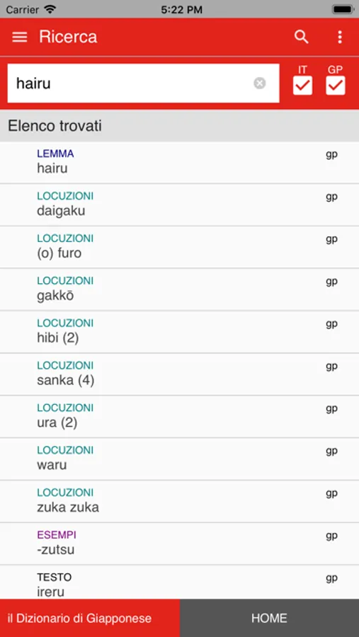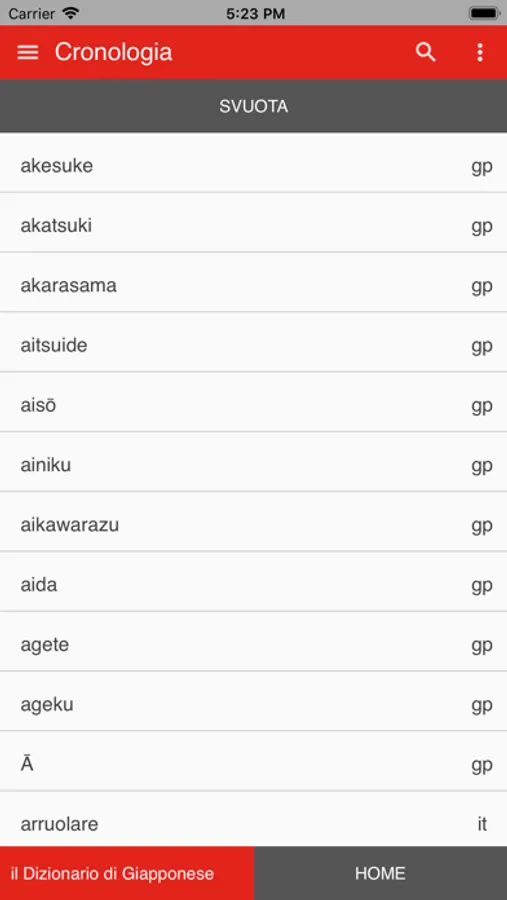 • Preferiti — per salvare le parole da imparare