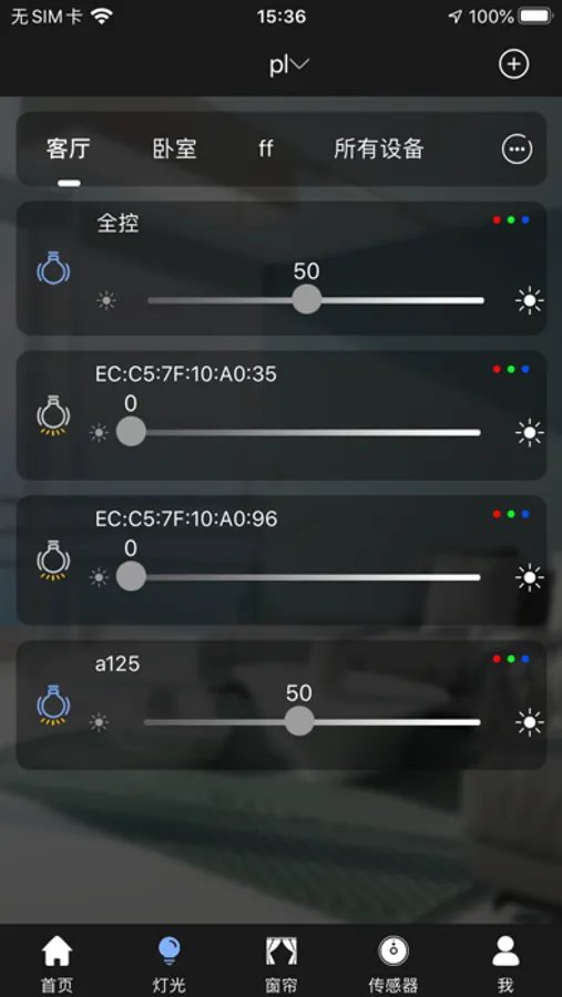 4. Turn on/off lights. Change RGB, CCT, HSK or level of light.