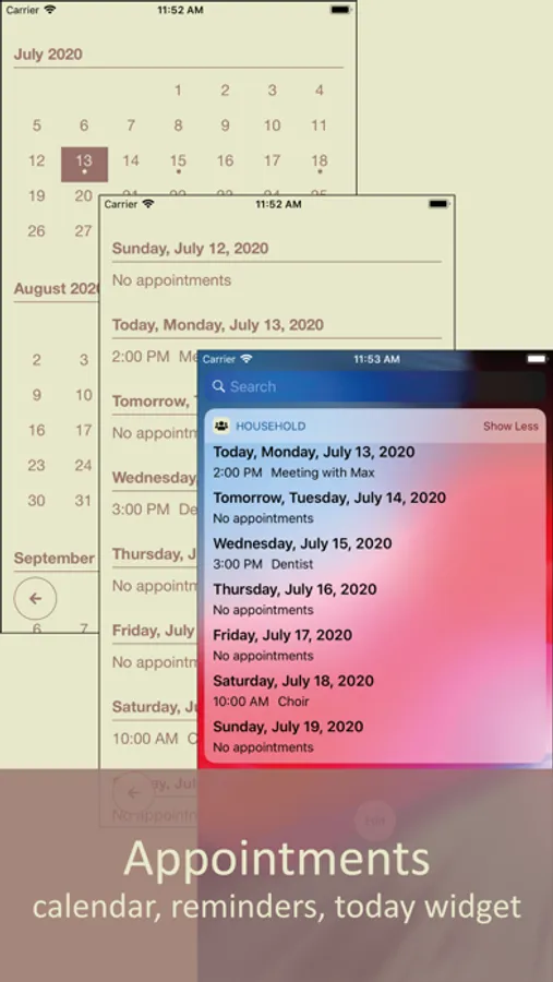 Share appointments, reminders, shopping-lists, notes, checklists, contacts, etc. with every member of your household and get push notifications when something changes or happens.