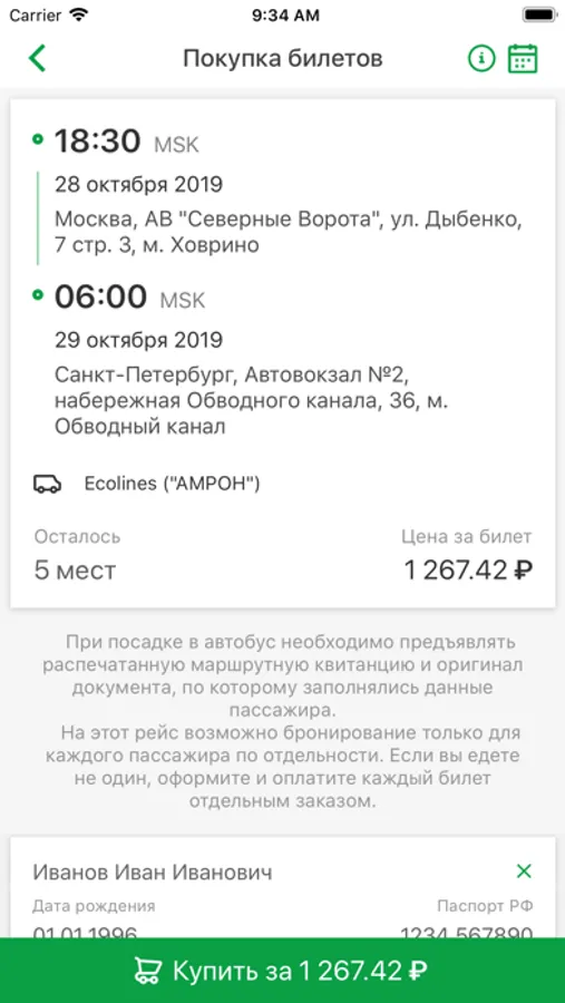 Оплачивайте билет банковской картой в удобном для вас месте. Информация о покупке автоматически передаётся на автовокзал пункта отправления и отображается в посадочной ведомости перевозчика.
