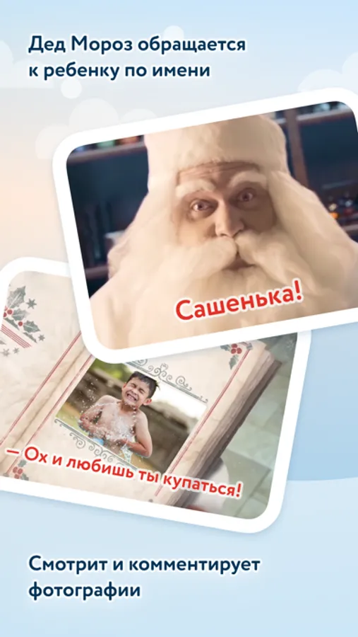 В нем Дед Мороз несколько раз обратится к ребенку по имени, посмотрит и прокомментирует его фотографии, похвалит за личные достижения. С помощью волшебной книги Дед Мороз оценит, как ребенок вел себя в этом году, и даст наставления на год следующий.