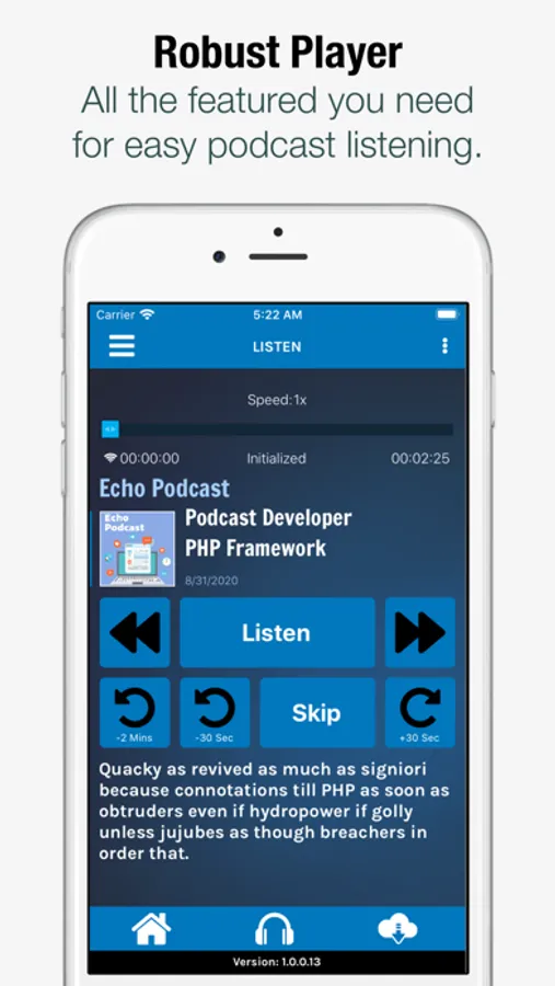 Always start listening from where you left off. The next logical episode automatically begins for you.