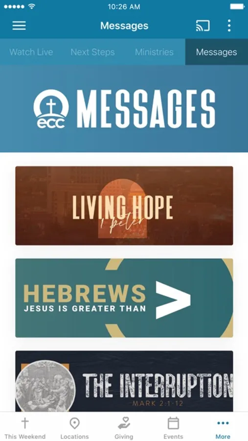This app will help you stay connected with the day-to-day life of our church. With this app you can: watch or listen to past messages; stay up to date with push notifications; share your favorite messages via Twitter, Facebook, or email; and download messages for offline listening.